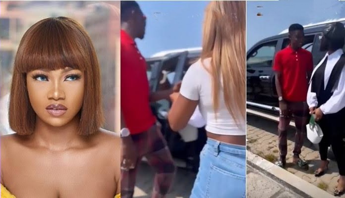 The Controversial BBNaija Star happened to have noticed him at the roadside and got down from her vehicle to greet the young man who probably revealed that he is a fan of hers.
