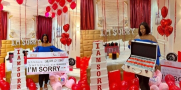 The man allegedly apologized to his Nigerian girlfriend with “N10million”, box-filled cash gift in dollars, big teddy bear, money-bouquet, gift boxes among other items.