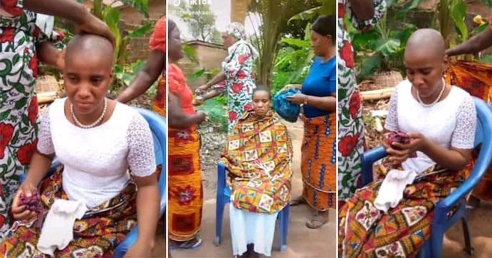 In a clip she posted on TikTok, a group of women gathered her as her hair is shaved with the aid of a pair of scissors.