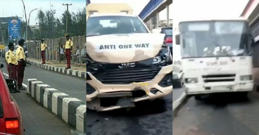 In a video making the rounds, the woman alleged that a LASTMA anti one-way van almost crushed passengers in a staff bus to death, while driving on a one-way path at Ikeja, Lagos.