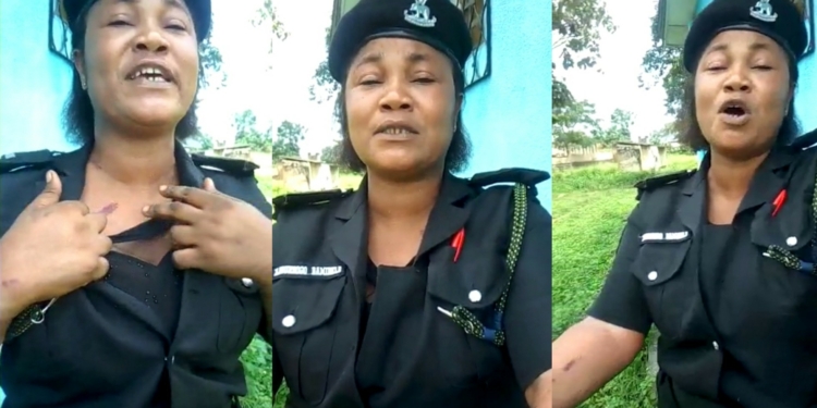Olorunsogo who appeared all bruised in the video, cried for help after her senior colleague allegedly beat her to stupor and stripped her naked at the station in the presence of her junior Colleagues and some civilians.