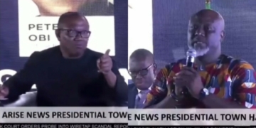 The former governor of Anambra State who could no longer tolerate the PDP presidential campaign spokesperson’s actions, angrily confronted him publicly, while also pointing out that Dino Melaye was lumping supporters of other parties with his side remarks at the Arise TV town hall meeting.