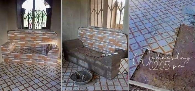 The video sighted on TikTok, revealed that the chairs and bed in the building were constructed using concrete and tiles.