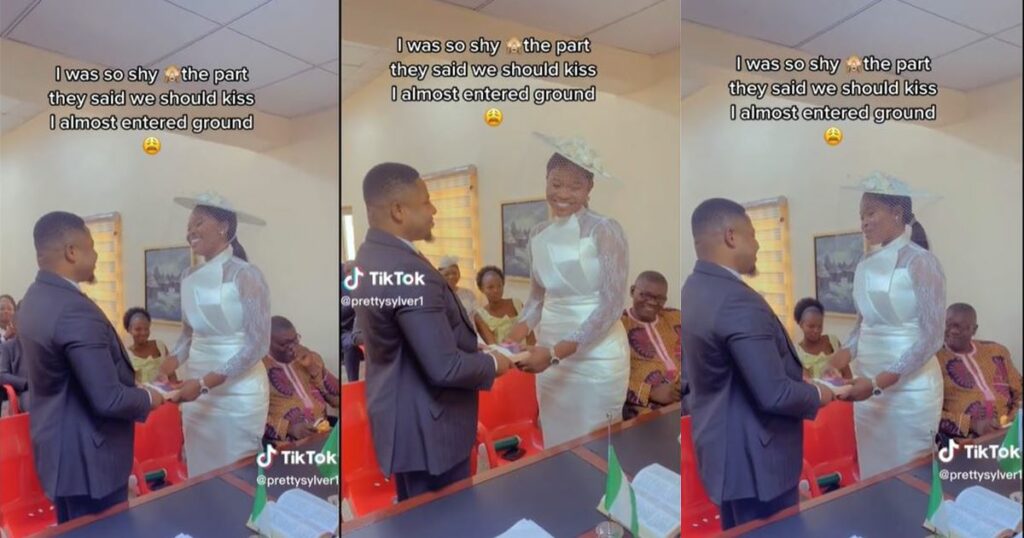 Viral video footage captures the moment a bride refused to kiss her man during her court wedding proceedings.