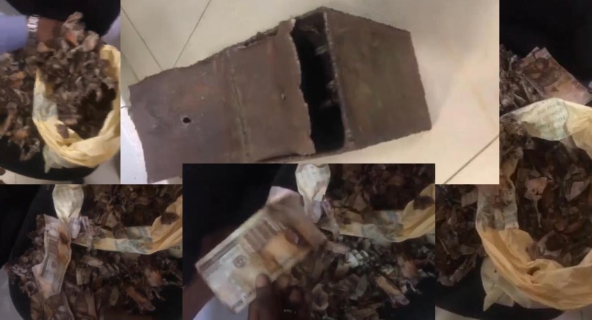 Based on a now viral video, the locally made piggy bank wrought of iron could be seen with the Naira notes taken out of it.