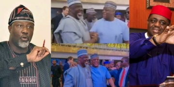 Former Aviation minister, APC staunch member, Fani Kayode and spokesman of the Peoples Democratic Party’s Presidential Campaign Council (PCC), Dino Melaye, shared a warm hug at an event as they settled their long-term squabble.