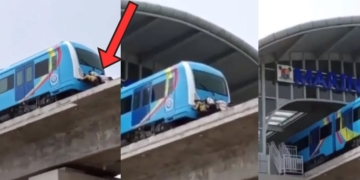 The shocking aspect of the incident is the fact that the train being pushed is part of the Blue Rail Line commissioned in January by President Muhammadu Buhari.