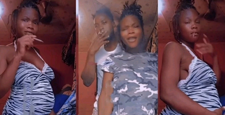 In the clip, the young woman and her man, whom she referred to as her husband, each had a blunt in their hand and were dragging the smoke as they put on a show for social media users.