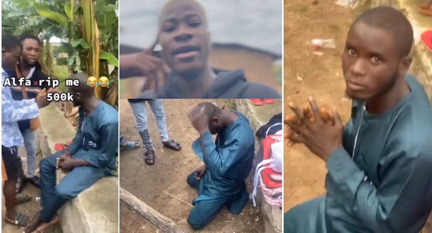About 3 suspected ‘yahoo boys’ (internet fraudsters) have been spotted in a viral video attacking an Islamic cleric popularly known as “alfa” for allegedly “defrauding” their colleague of N500k.