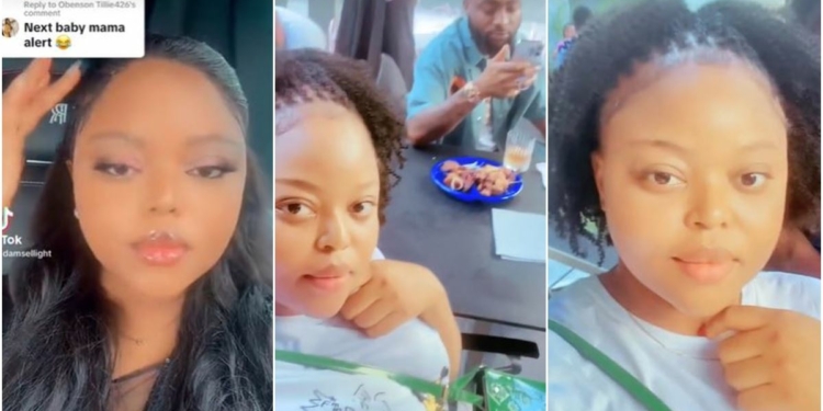 A Nigerian woman identified on TikTok by her handle as @damsel amassed the attention of many after she shared an exciting video capturing the moment when she took a selfie video with Davido in the background while he was eating.