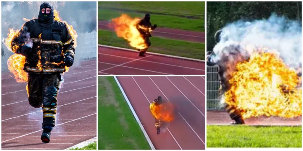 Clad in a protective suit, Jonathan fearlessly sprinted a staggering distance of 272.25 meters (893 feet) while entirely engulfed in flames, shattering the previous record of 204.23 meters (670 feet).