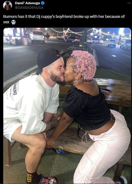 “Rumors has it that Dj cuppy’s boyfriend broke up with her because of sex 💀”