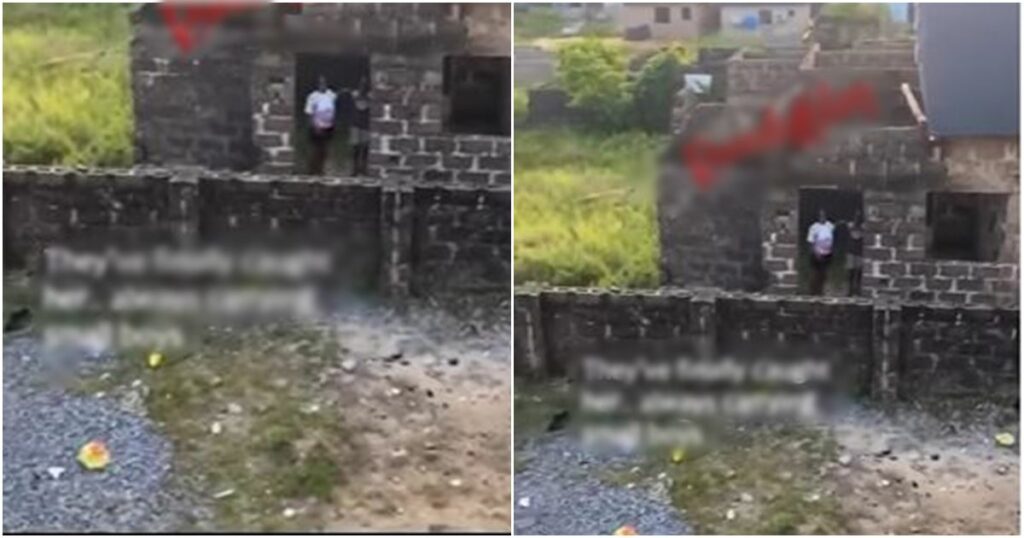 - A video circulating on social media captures the moment a man nabbed a lady and an underage boy in an uncompleted building.
