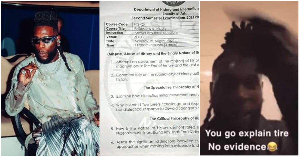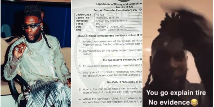 Students of History and International Studies at the University of Uyo were left to decode and give a vivid answer to an intriguing question nicely crafted by their lecturer which incorporated Burna Boy’s trending cliche, ‘You go explain tire, no evidence.’