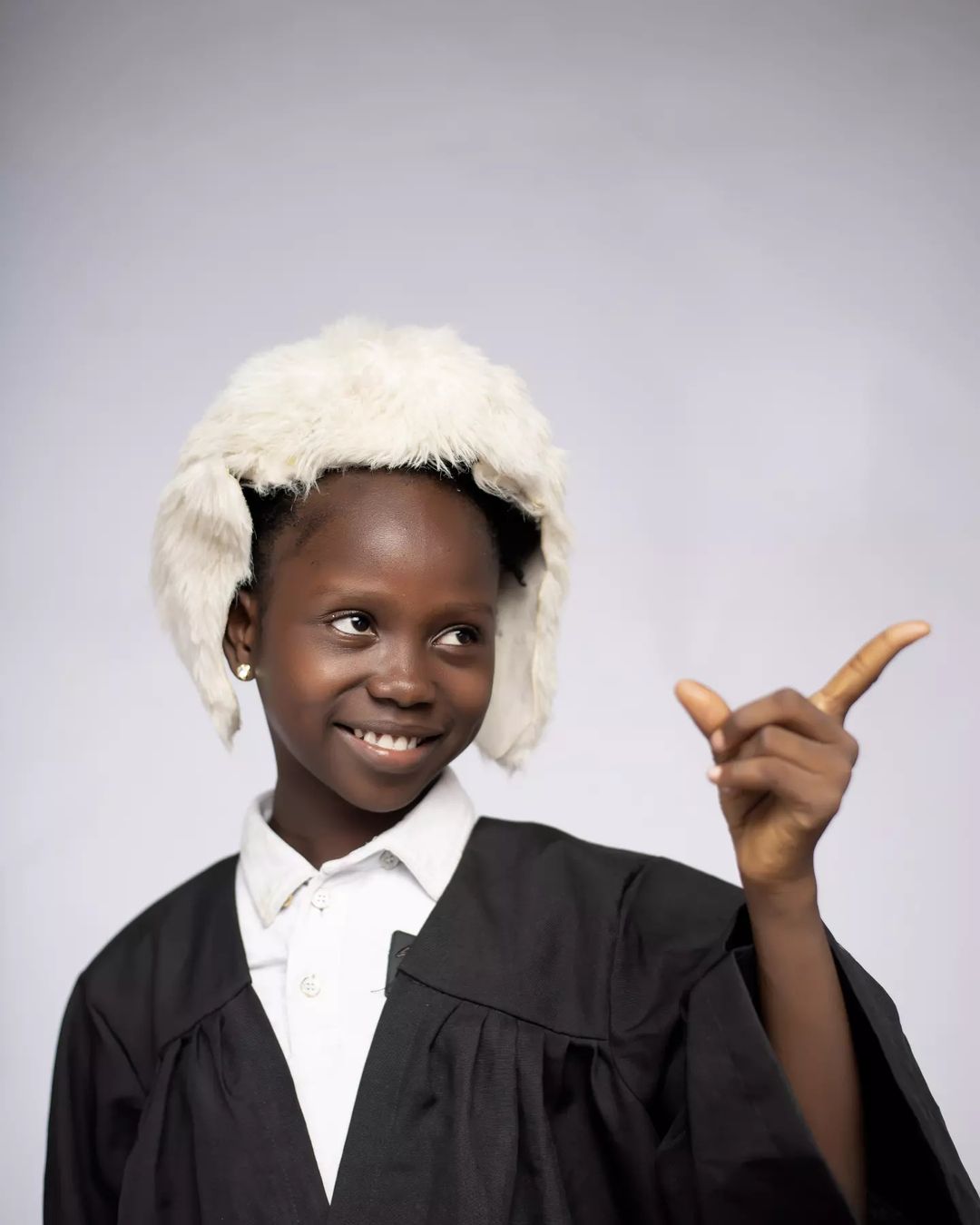In recent photos shared by the 11-year-old girl on the photo-sharing platform, Instagram, she rocked a lawyer’s costume looking all grown up.