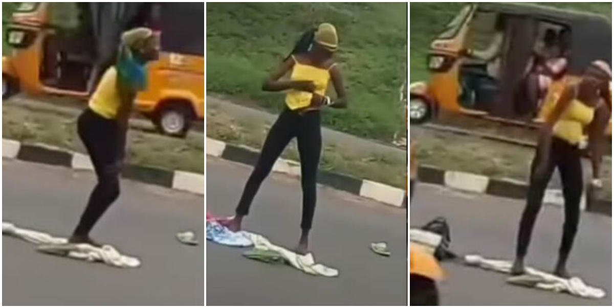 Young lady displays bizarre behavior after alleged 'yahoo boy' drops her on busy road