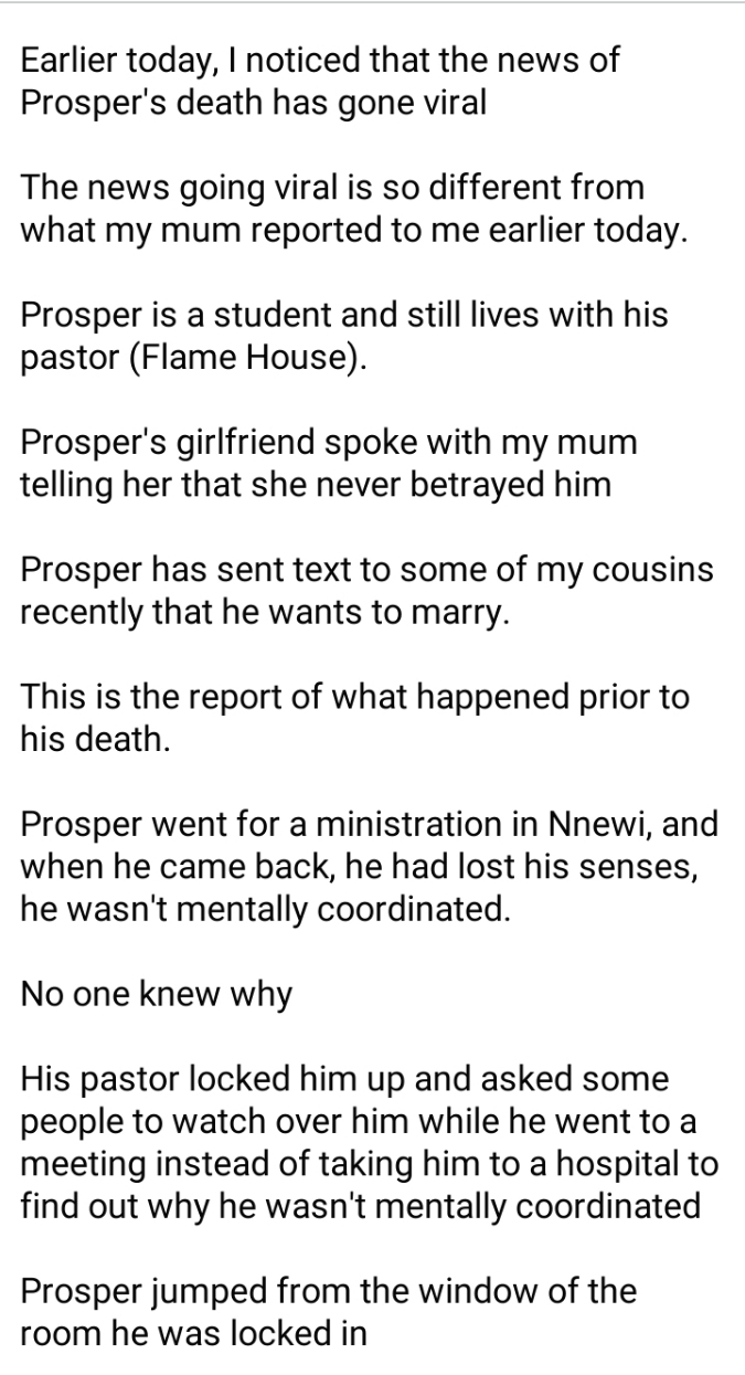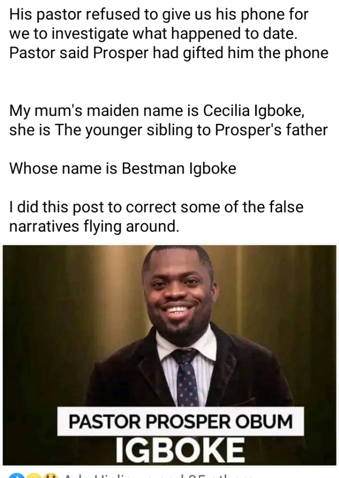 Adding to this, the cousin expressed that their attempts to inquire into the incident were hindered by the pastor, who refused to provide access to Prosper’s phone for investigation. The pastor alleged that Prosper had gifted him the phone.