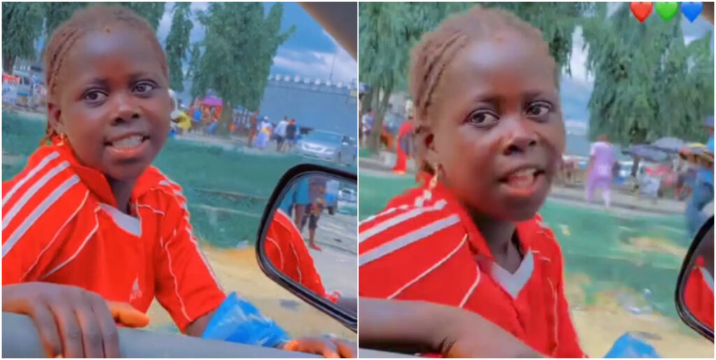 The young beggar, whose identity remains undisclosed, showcased eloquence and charisma as she approached a motorist who had rolled down his car window.