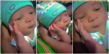 In the video, Baby Ezekiel is seen lying comfortably, with his tiny hand resting beside his cheek, evoking a sense of deep contemplation that is uncommon for a child of his age.
