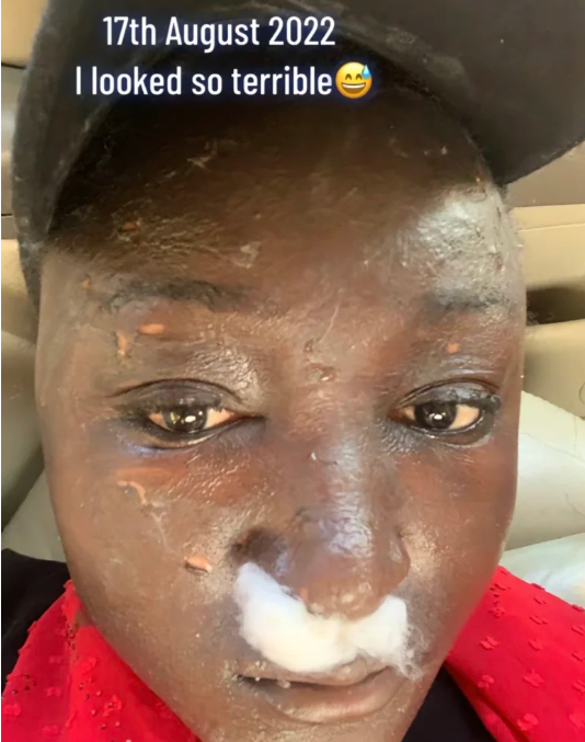 In the series of posts, she described the extensive measures she had to take to restore her skin and combat the aftermath of the lab experiment.