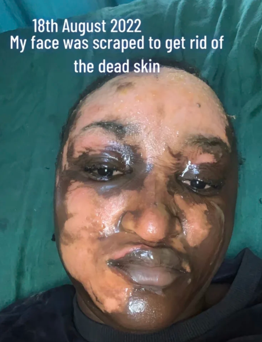 - The incident occurred on August 17, 2022, and left her with dead skin, prompting her to seek multiple creams and skincare products for recovery.