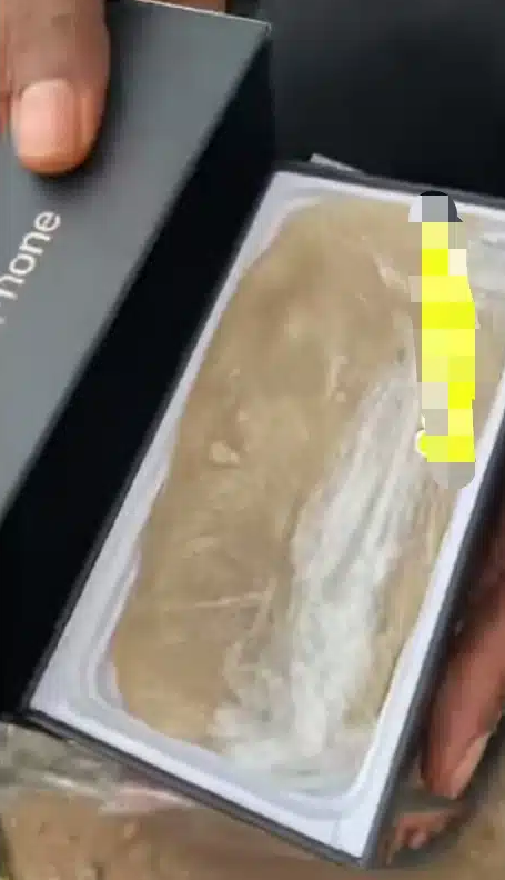 The fufu had been positioned in a manner that gave the impression of the expected weight and dimensions of an iPhone, thereby deceiving the unfortunate customer.