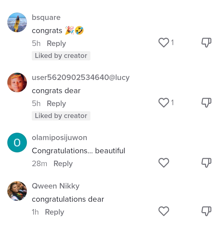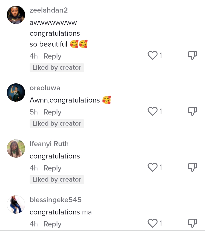 This heartening display of gratitude and love resonated with many viewers as they took to the comment section to share in the lady’s joy by dropping congratulatory comments.