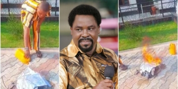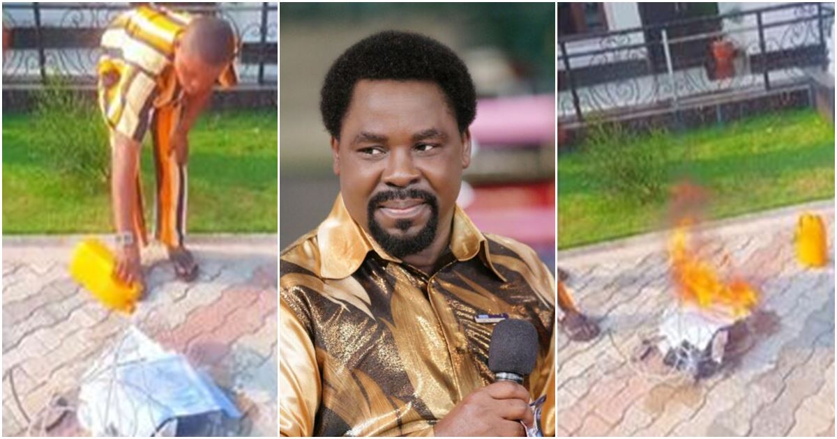 Speaking, the man noted that the reason for burning it was because of the outright removal of the Emmanuel TV channel; a station owned by SCOAN.