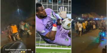 A video shows a large number of people jubilating as they moved to Nwabali’s dad’s house to hail the goalkeeper for his outstanding performance.