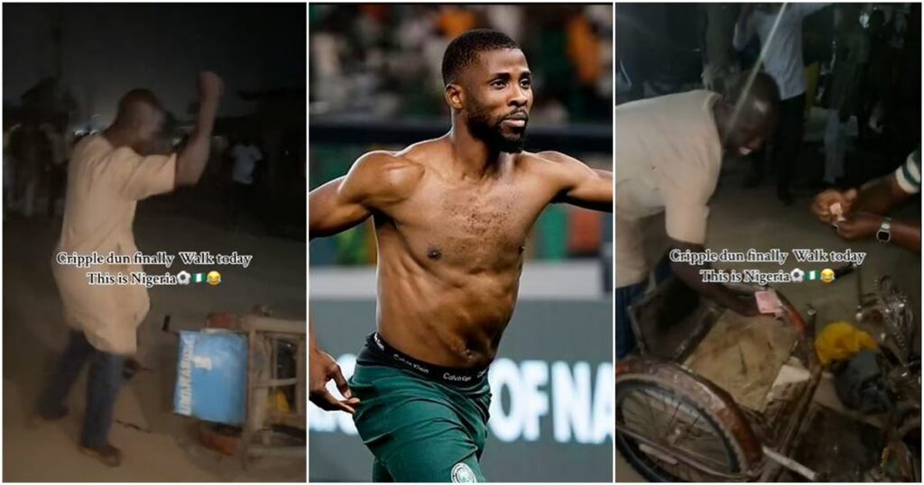 A Nigerian man believed to be disabled, gained widespread attention on social media when he suddenly left his wheelchair immediately after the Nigeria Super Eagles secured their place in the finals by defeating the South African team in the AFCON semi-final match.