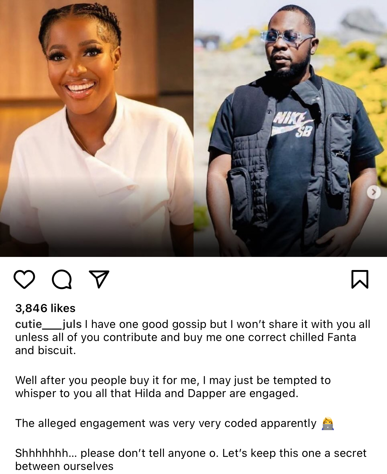 • Famous chef, Hilda Baci has allegedly been engaged to her lover, Dapper, but they have been keeping it under wraps.