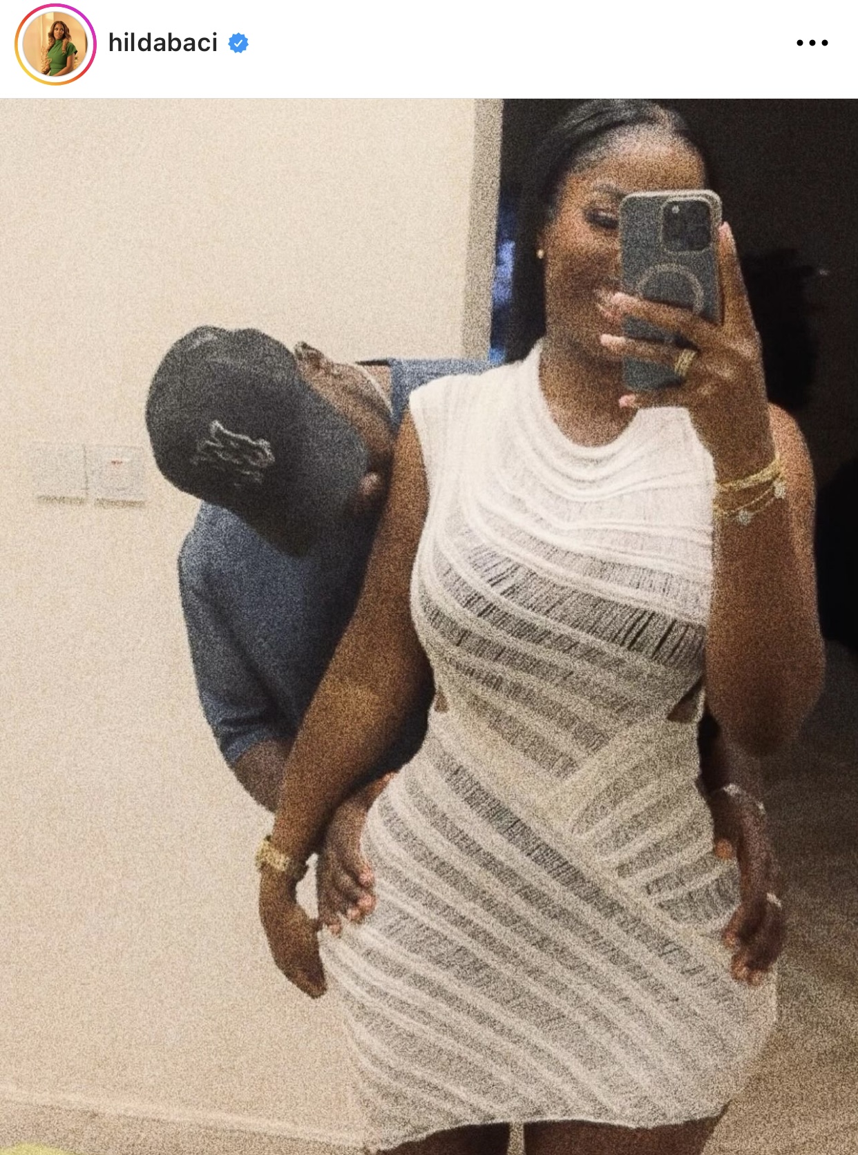 WITHIN NIGERIA reported that Hilda Baci shared some gorgeous pictures on her Instagram handle on Monday. In the post, ‘Dapper’ was holding her backside, and he covered his face with a cap.