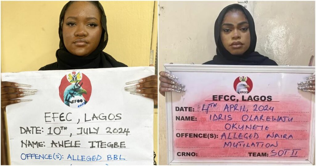 Itegbe humorously recreated the image for her Costume day, donning a similar outfit to Bobrisky’s and jokingly claiming to have been arrested for alleged BBL (Brazilian Butt Lift), in contrast to Bobrisky’s arrest for Naira abuse.