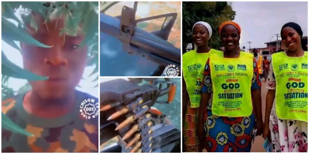 A shocking video has taken the internet by storm, featuring a soldier boldly flaunting a machine gun while challenging members of The Lord’s Chosen Charismatic Revival Ministries.