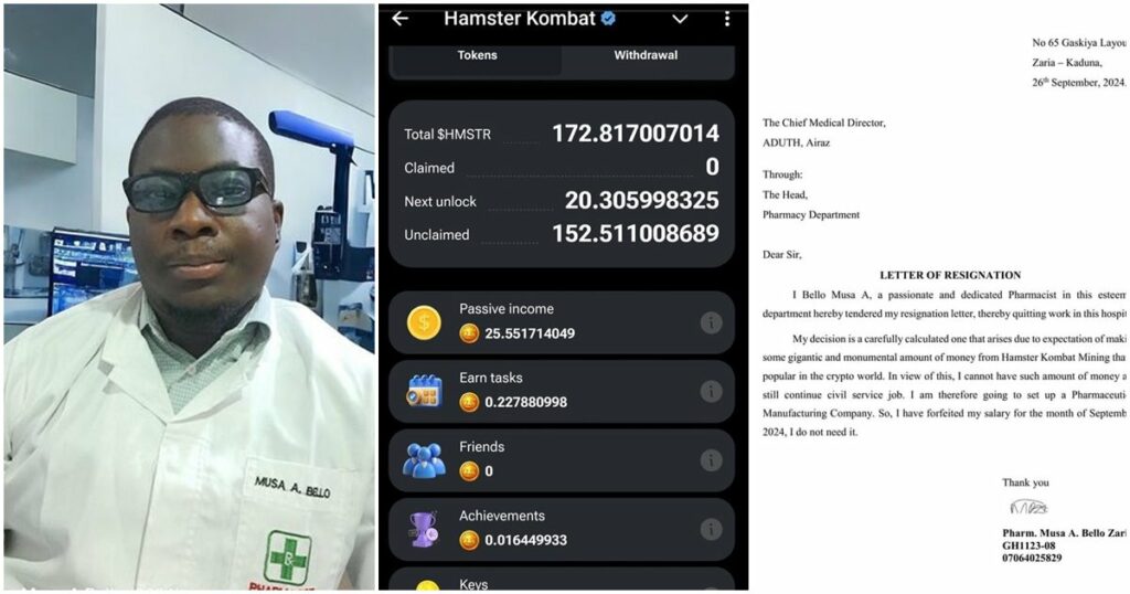 Bello Musa, a pharmacist from Nigeria, has taken to social media to express his outrage and disappointment with Hamster Kombat, a cryptocurrency platform.