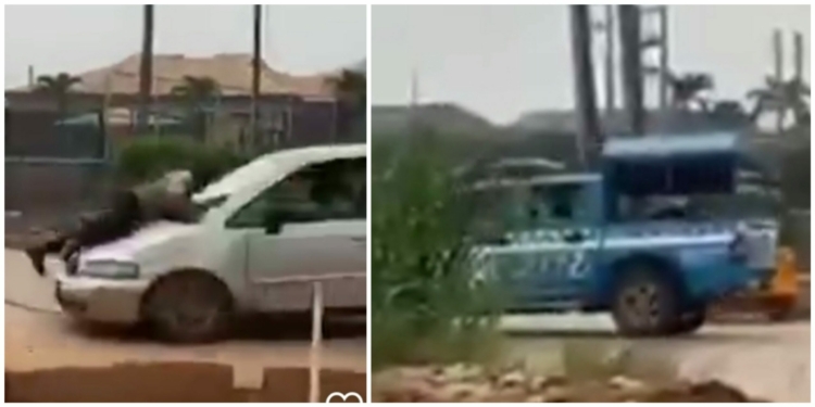 A gripping video showing a male officer of the Federal Road Safety Corps (FRSC) locked in a dangerous struggle on top of a speeding car has erupted across social media, sparking waves of awe, shock.