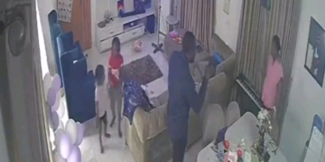 • The footage captures a husband, identified as a lawyer, raising his hand against his wife while their little children witness the horrifying scene unfold.