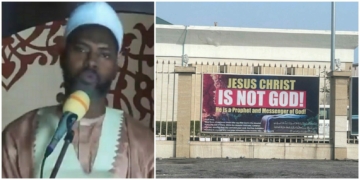 The banner ignited a wave of disapproval, it’s bold statement, “Jesus Christ is Not God,” struck nerves, leading to widespread criticism and accusations of religious insensitivity.
