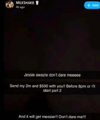 The claims were posted by a Snapchat user operating under the name Milkshake, who alleged that Davido paid N25 million to Jessie after she threatened to release a sex tape involving them.