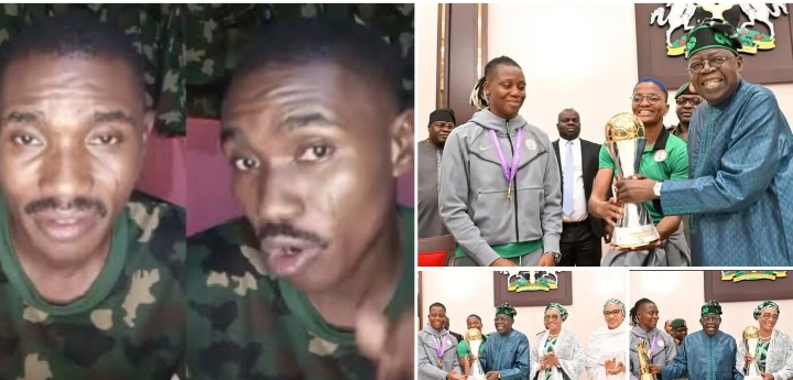 A Nigerian soldier has stirred online reactions after a video of him voicing deep frustration over the federal government’s reward to the Super Falcons surfaced on social media.