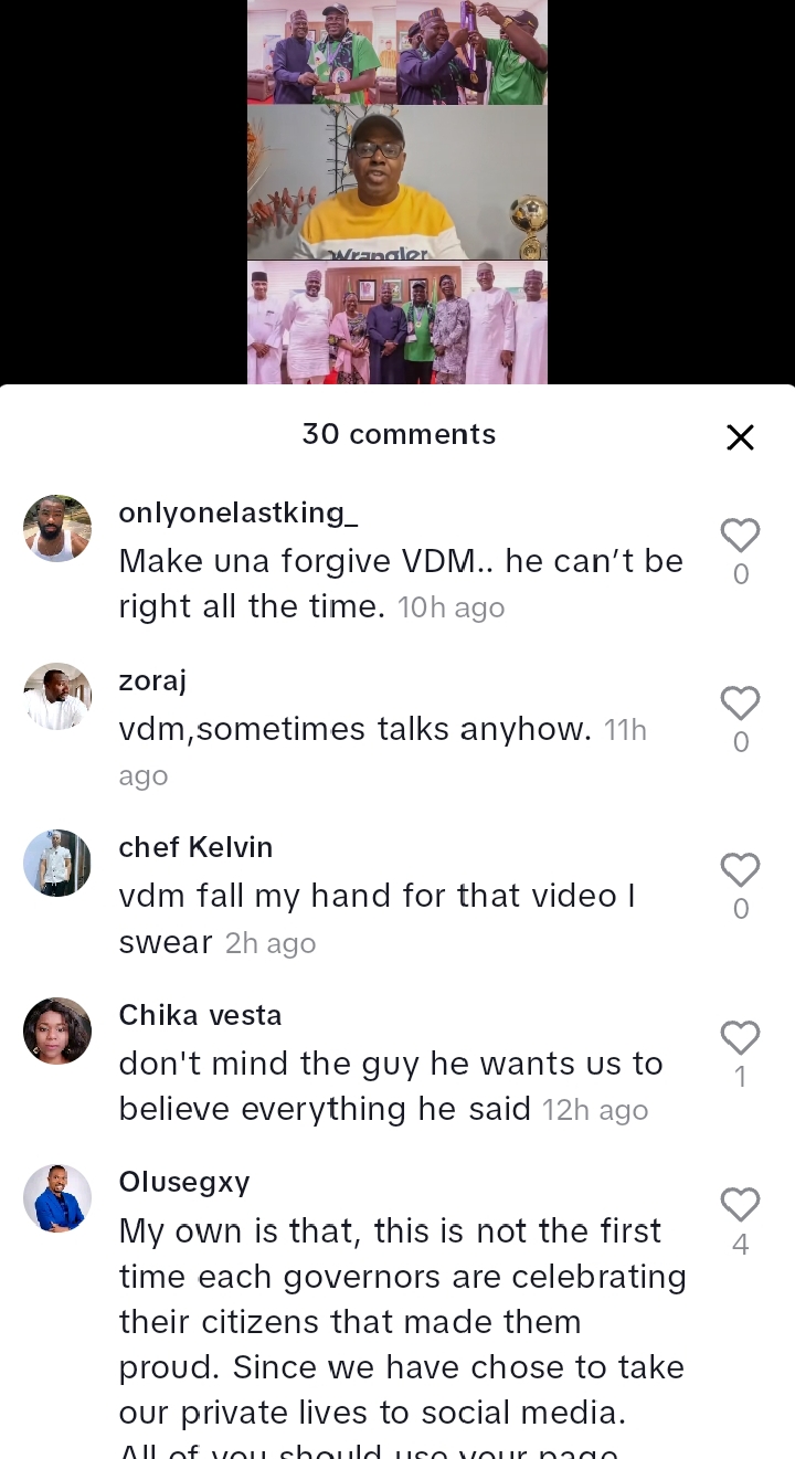 Following the Adamawa Governor’s solo recognition of Coach Madugu—who also hails from Adamawa—social media users have resurfaced Verydarkman’s comments and called out what they perceive as a double standard.
