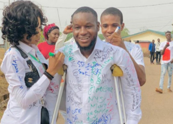 A young Nigerian man who lost a leg during the #EndSARS protest that rocked the nation months ago has joyfully...