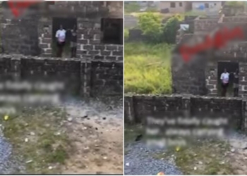 A video circulating on social media captures the moment a man nabbed a lady and an underage boy in an ...