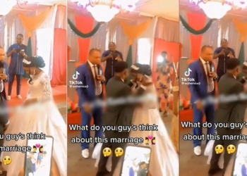 Cybercitizens are in awe over a disturbing video that captures the weird moment a groom slapped his bride while they ...