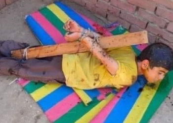 A seven-year-old boy was tied to a pole and covered in honey to attract bees by his dad as a ...