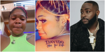 A Nigerian lady captures attention of many by getting a tattoo of Davido's name on her back, publicly professing her ...