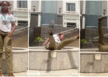 A Nigerian corper narrowly escape a dangerous fall during a passing out parade (POP) photoshoot. The corper inadvertently stumbles upon ...