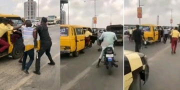 A bus driver has been captured on tape battling with police officers and LASTMA officials that tried to arrest him ...