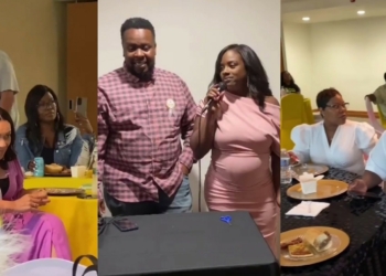 Drama ensued at a pregnant woman's baby shower after the expectant mother tackled guests who didn't come along with a...