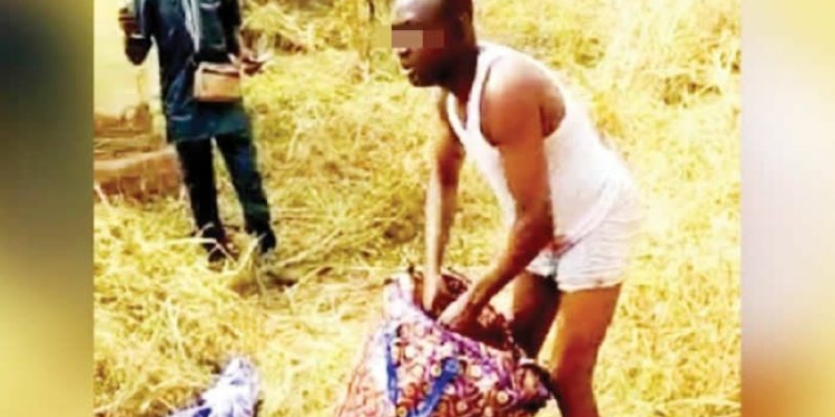 A video clip of the scene of the crime showed the suspect bringing out the mutilated body in a bag, as a crowd beat him with sticks.